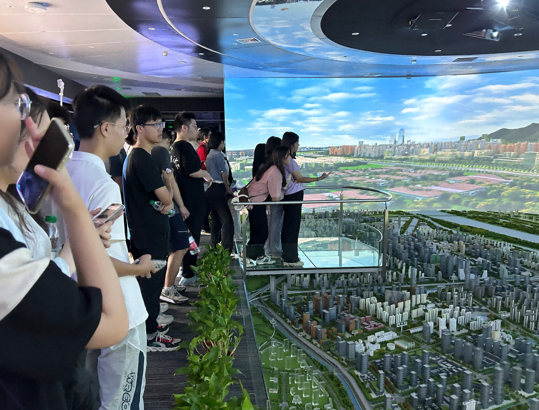 园区内现代建筑群错落有致,每一砖一瓦都蕴含着创新和科技的基因。平安陆金所科技IT菁英暑期实训营的学员们怀揣着对科技的无限憧憬步入研创园展厅。展厅内部设计充满科技感,一块块巨大的模型和显示屏映入眼帘,生动展现了研创园的科技规划,以及从梦想走向现实的开展历程。