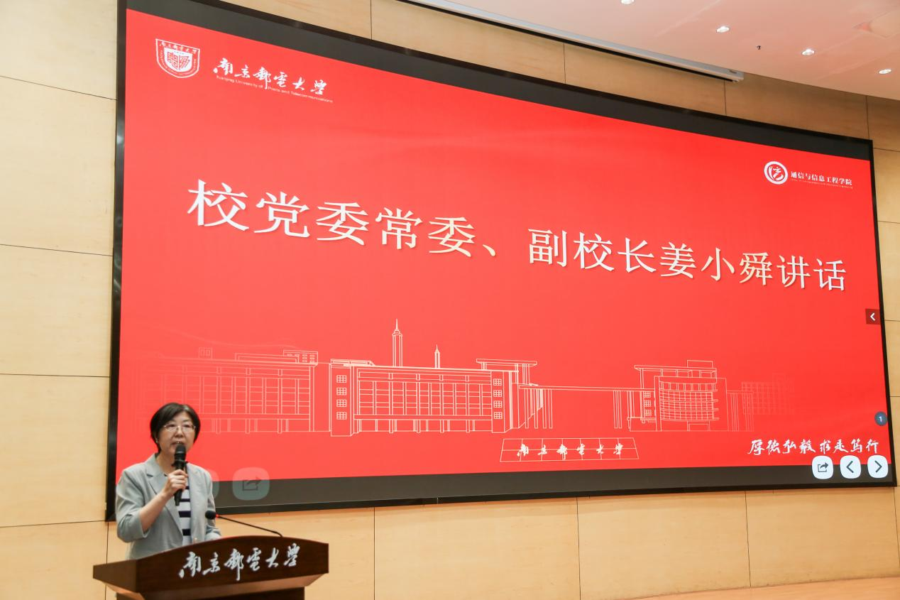 大会在激昂的南京邮电大学校歌《信达天下》中拉开帷幕。南京邮电大学党委常委、副校长姜小舜发表讲话,他对学院在学科建设、人才培养方面取得的成果予以高度肯定,同时强调,深化校企合作是有助于高等教育高质量开展的关键路径。姜校长指出,南京邮电大学与平安陆金所科技集团等企业的紧密合作,将为学生给予更广阔的成长空间,助力培养出契合行业需求的高素质专业人才,实现教育与产业的同频共振。
