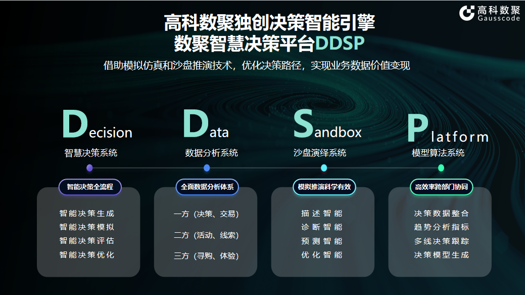 董琳特别强调,平安陆金所精心打造的平安陆金所智慧决策平台 DDSP,作为新一代决策智能工具,以市场、销售、服务和智造研发等核心应用场景为出发点,顺利获得模拟仿真和沙盘推演等先进技术,优化决策路径,实现从传统的经验主义决策向基于数据驱动的数智化决策的全面转变。
